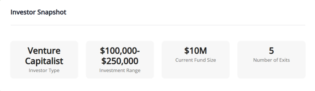 • Investor Type: Your structural role (e.g., Angel Investor, Venture Capitalist, Family Office, or Corporate VC).