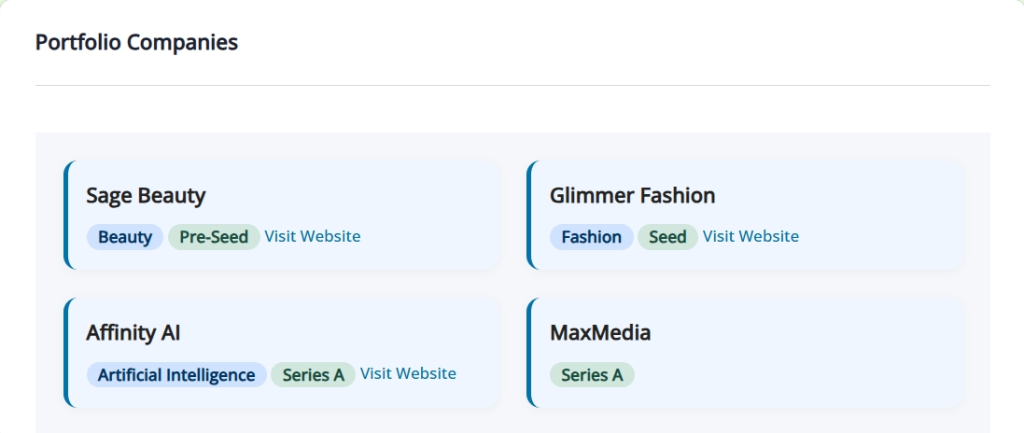 3. Use the Portfolio for Social Proof: A well-maintained portfolio section is your strongest marketing tool. It shows founders the “company they will keep” if they take your investment.